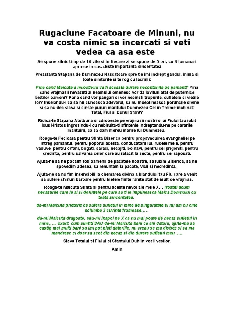 Oct 15, 2019 · 15 rugăciuni puternice, făcătoare de minuni, rostite în momente de cumpănă. .. O rostești și vezi rapid efectele.