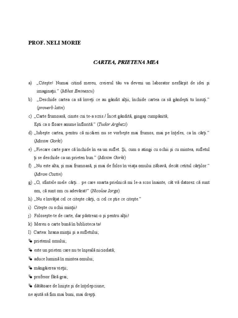 Nevoile umane din primele momente ale vieţii sunt hrana, căldura, protecţia, afecţiunea, lumina.vorbele blânde ale mamei deschid căi nevăzute ale comunicării, care îmbracă forma gânguritului.. Îmi amintesc cu plăcere de prima carte pe care am pus mâna. Nevoile umane din primele momente ale vieţii sunt hrana, căldura, protecţia, afecţiunea, lumina.vorbele blânde ale mamei deschid căi nevăzute ale comunicării, care îmbracă forma gânguritului. Disciplina opțională „cartea, prietena mea" îi ajută pe elevi să fie capabili să înţeleagă lumea. De asemenea, această disciplină de studiu.. Îmi amintesc cu plăcere de prima carte pe care am pus mâna.