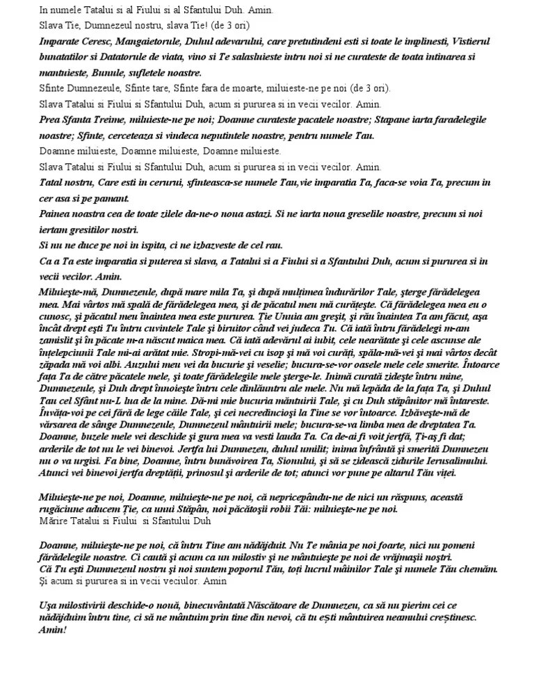 În numele tatălui, şi al fiului şi al sfântului duh. Recitată însă ca o poezie nu aduce beneficii. 26/03/2020 · așa, doamne, ascultă rugaciunea noastră și milostiv fii nouă, că bun și iubitor de oameni ești și ție marire înălțăm.